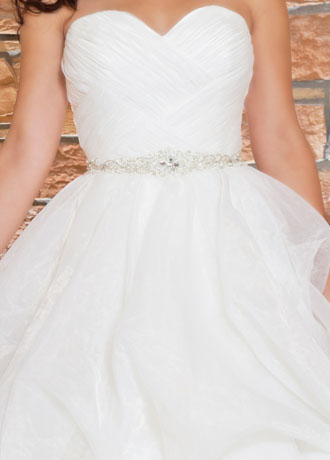 Shelly has a Full Ball Gown Skirt with Pick-Ups. The Pleated Bodice has a Sweetheart Neckline.