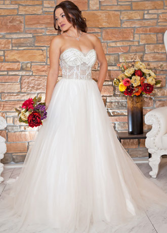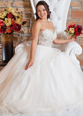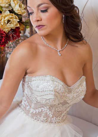 Lauren is a beautiful ball gown dress with a intricately beaded bodice. The bodice can be worn with an illusion (see through) waist for fully lined. Skirt is tulle over organza