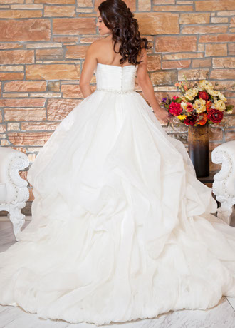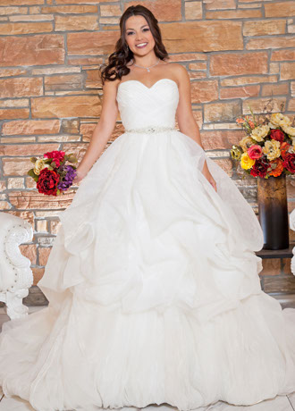 Shelly has a Full Ball Gown Skirt with Pick-Ups. The Pleated Bodice has a Sweetheart Neckline.